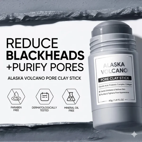 Say goodbye to blackheads and messy clay masks forever. The Alaska Volcanic Clay Stick is a high-performance detox treatment designed for the modern skincare lover who demands results without the hassle. Infused with 300,000ppm ultra-fine charcoal particles—50 times smaller than a grain of flour—this stick glides on smoothly to dissolve deep-seated blackheads and absorb 2x more excess oil than traditional masks. Formulated with Alaska Volcanic Clay (pH 5.5) and 5% Glycolic Acid, it gently resurfaces your skin, removing up to 76% of dullness and refining texture in just one use. No sticky fingers, no tight skin—just visible clarity.
