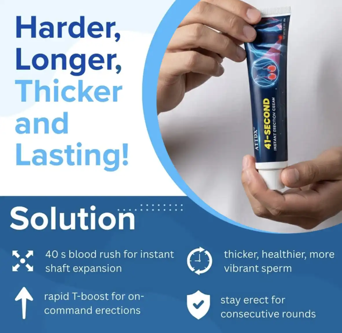 Don’t let awkward moments kill the mood. ATTDX® 41-Second Instant Firming Cream is engineered for the man who demands performance without the wait. Using breakthrough Micro-Encapsulated Transdermal Technology, the active compounds penetrate the target area within 40 seconds, triggering an immediate surge of nitric oxide and blood flow. Whether it’s boosting sensitivity or ensuring rock-solid firmness, ATTDX® gives you total control over your bedroom rhythm—instantly, discreetly, and naturally.