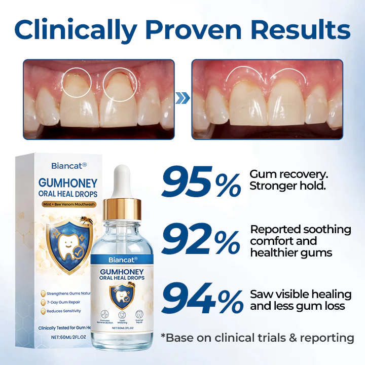 Reclaim the health of your smile with a professional-grade solution designed to soothe, repair, and strengthen your gums in just seven days. As we age, natural factors like thinning enamel and reduced saliva production leave our gums vulnerable to recession, inflammation, and painful sensitivity. Biancat® GumHoney Oral Heal Drops move beyond basic hygiene, utilizing advanced bioactive technology to target the root causes of periodontal distress and restore the structural integrity of your oral tissue.