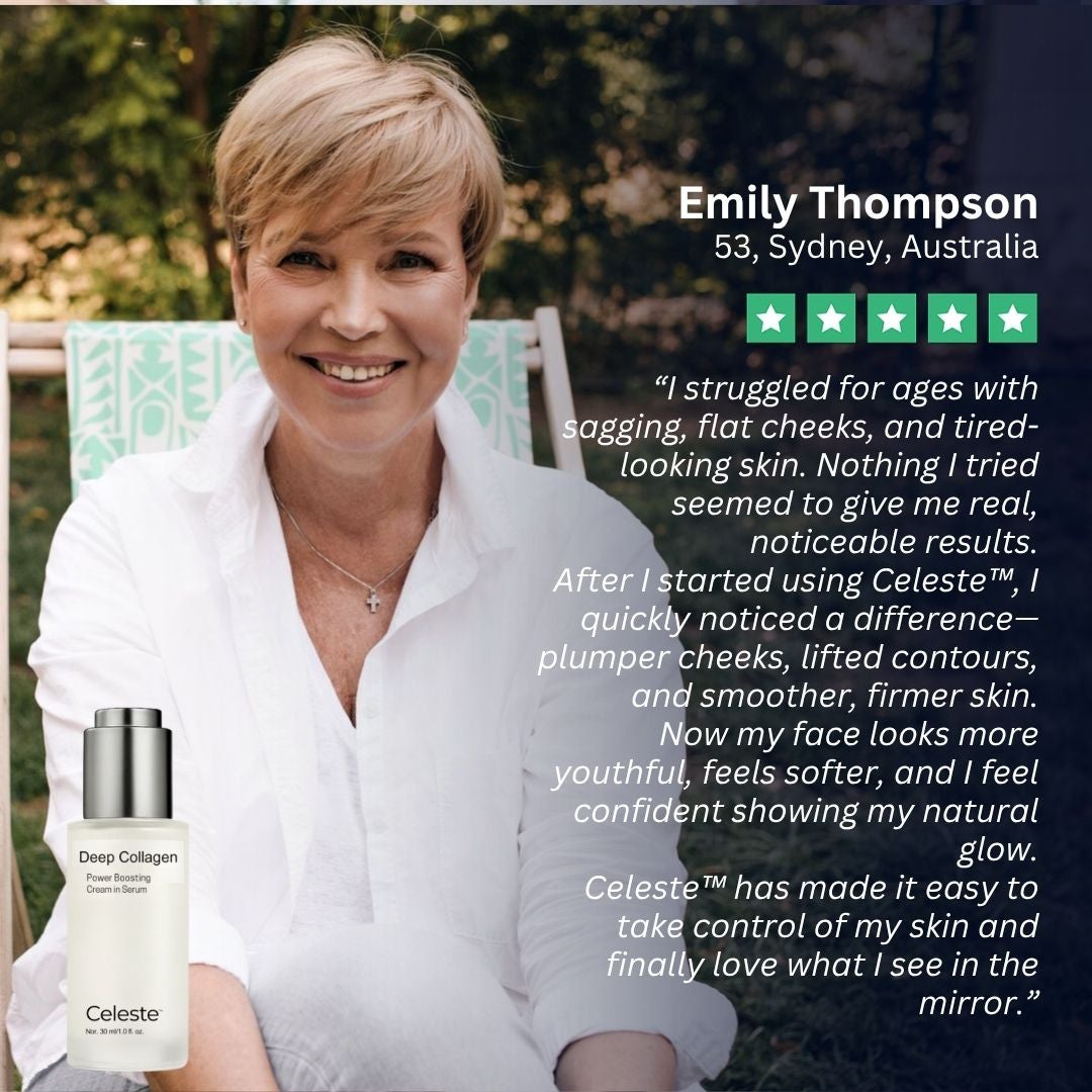 Meet Celeste™ — a lightweight facial formula designed to support smoother-looking skin, improved texture, and a naturally radiant appearance. Created with a blend of modern skincare ingredients, it helps enhance the look of skin firmness and balance while maintaining a soft, comfortable feel.
