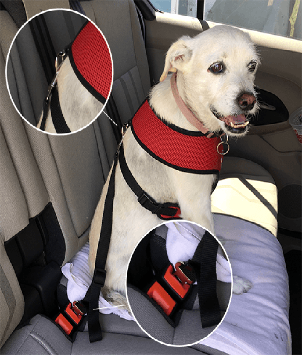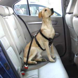 It keeps them secure without being confined to a kennel. Strapped safely into your vehicle’s seat belt device, your dog can travel while enjoying the scenery!