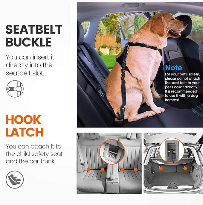 - Offers both Safety and freedom — The belt is fully adjustable from 17 to 29 inches so you can give a shorter reign to a smaller, relatively calm pooch and a wider range to more active dogs. It’s short enough to keep them from lurching during a sudden stop, swerve, or an accident but long enough so they can lie down, sit comfortably, and stretch around!