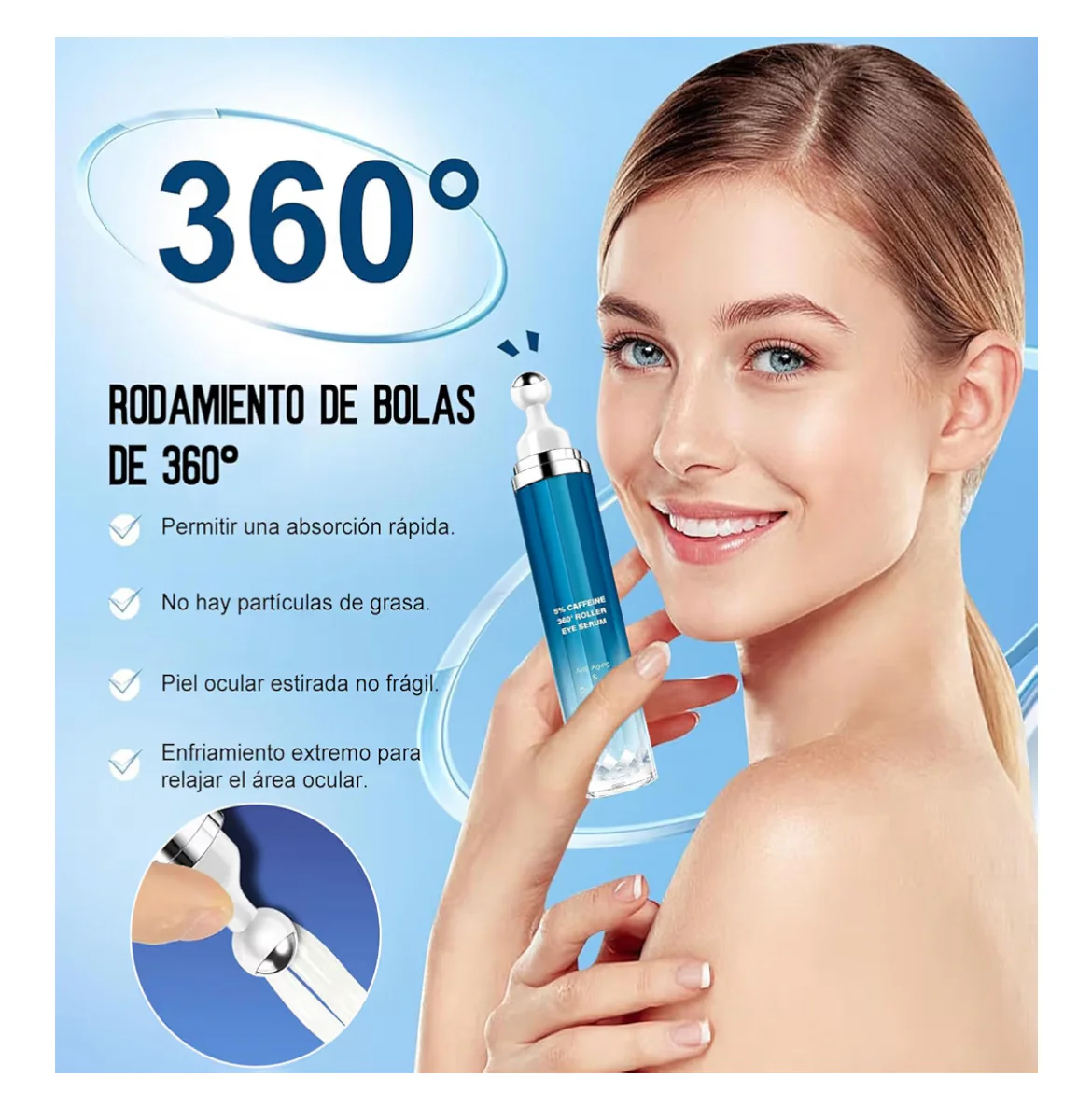 🌀 360° Professional Drainage: The metal roller-ball rotates in all directions to perform a lymphatic drainage massage, reducing swelling and ensuring 100% serum absorption.