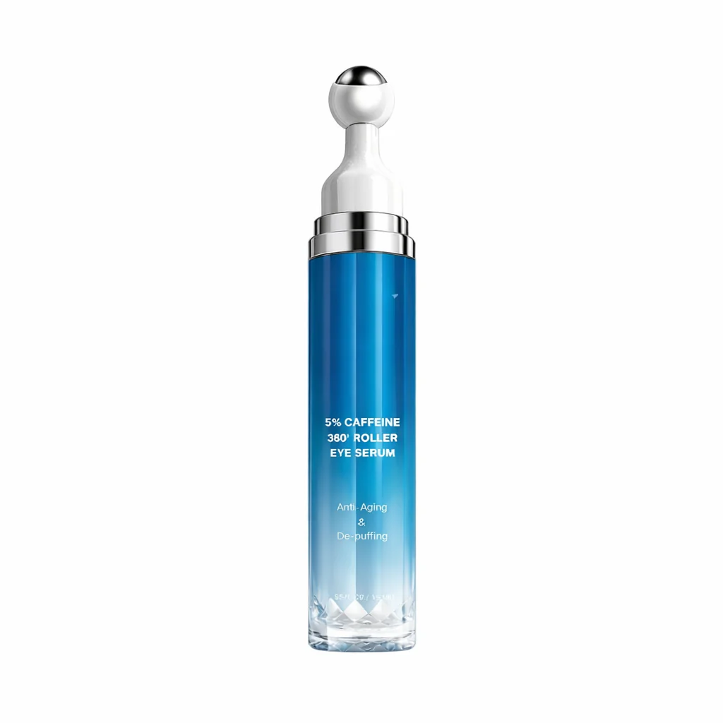 Look like you’ve had 8 hours of sleep, even when you haven’t. Our 5% Caffeine Eye Serum is a high-performance clinical treatment designed to rescue tired eyes. Combining the decongestant power of pure Caffeine with the anti-aging strength of Retinol and Hyaluronic Acid, this serum targets the three main signs of eye aging: puffiness, dark shadows, and “crow’s feet” wrinkles. The star of the show? Our 360° Metal Roller Applicator—a cooling, rotating massage tool that drains fluid, boosts circulation, and provides an instant refreshing sensation.