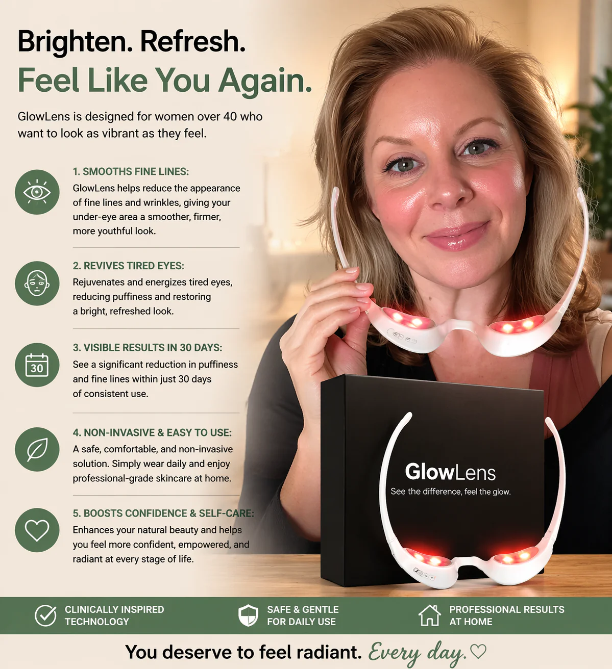 GlowLens™ 3-in-1 Red Light Eye Therapy Device