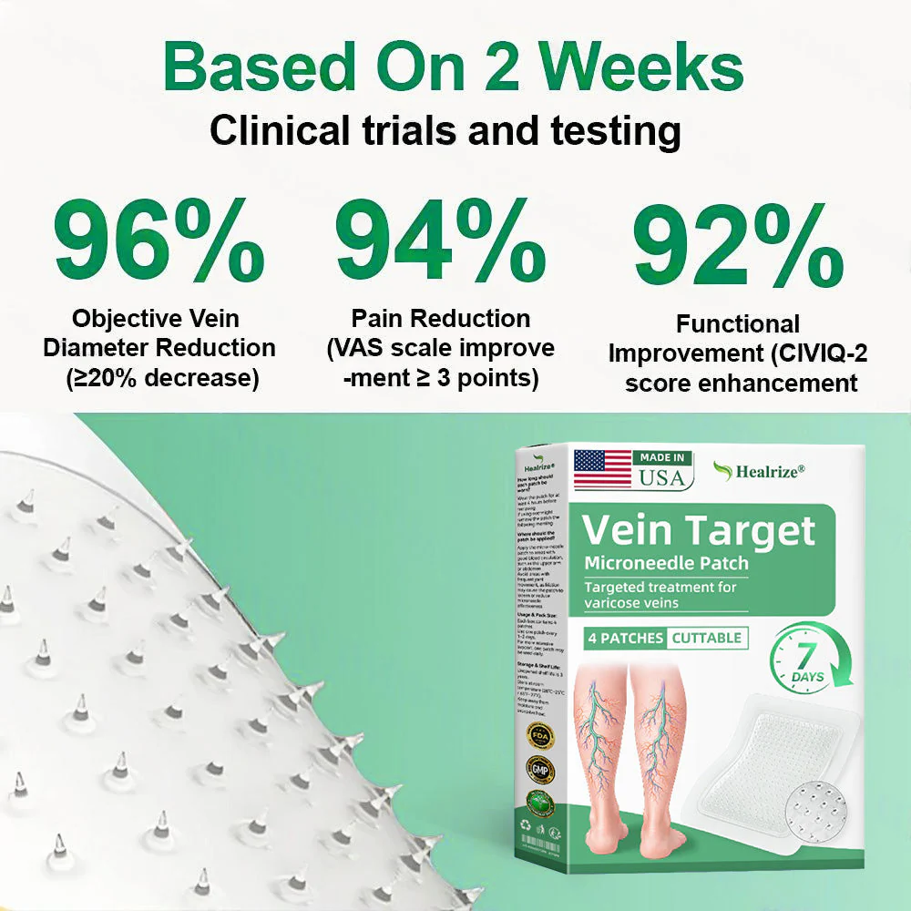 Experience a breakthrough in vascular health with Healrize® VeinTarget—the world’s first FDA-registered, GMP-certified microneedle patch for chronic venous insufficiency. While traditional creams sit on the surface, our proprietary 200-300 micrometer biodegradable needles create invisible micro-channels to deliver concentrated Alpine botanical compounds 100x deeper into the dermal barrier. This targeted system addresses the core cause of varicose veins—valvular incompetence—by delivering bioactives directly to the compromised veins. Join over 150,000 users who have restored their circulation and confidence in just 7 to 14 days, without the $6,000 cost of surgery.