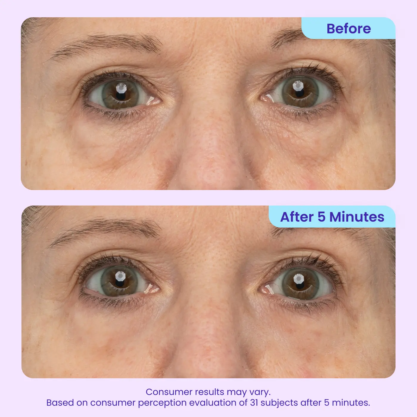 Effetto Lifting Istantaneo: Risultati visibili su borse e rughe in soli 5 minuti.