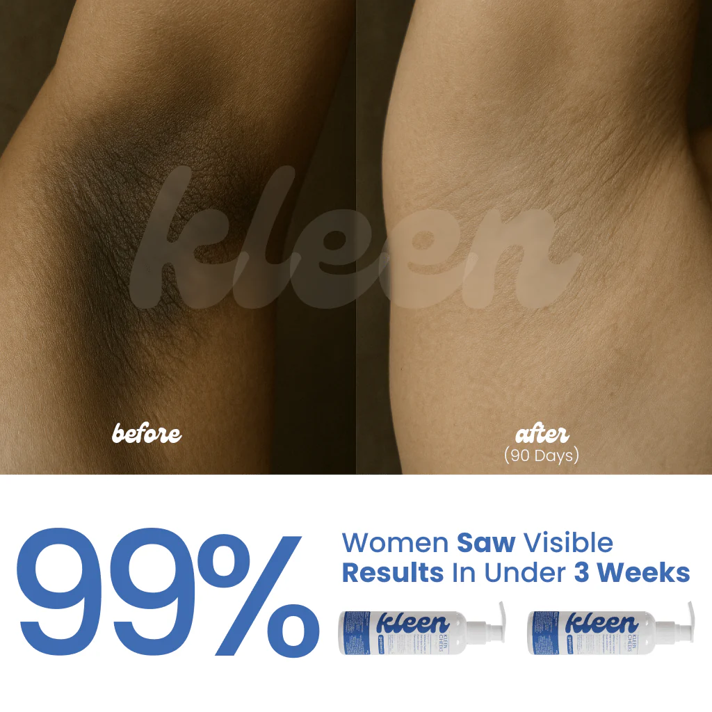 Ritrova la sicurezza e il piacere di una pelle uniforme con Kleen Cheeks, la lozione lussuosa studiata specificamente per trattare le aree più delicate del corpo. Creata originariamente per riparare la pelle danneggiata da scottature da ceretta, irritazioni chimiche o sfregamento, questa formula agisce sul pigmento in eccesso per schiarire gradualmente le discromie. Che si tratti della linea bikini, delle ascelle o di macchie su viso, mani e piedi, Kleen Cheeks offre una cura mirata per un incarnato luminoso e vellutato.