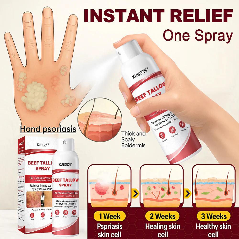 Every psoriasis cream you’ve ever used has one fatal flaw: You have to rub it in. For sensitive, psoriatic skin, friction is a trigger. It’s called the Koebner Phenomenon—the act of applying the “cure” actually triggers a new flare. KUBOZN breaks this cycle with a fine-mist spray that delivers medical-grade relief with zero skin contact. By combining grass-fed beef tallow (which matches human sebum by 60%) with clinical actives, KUBOZN feeds your starving skin barrier without ever touching the sensitive area.