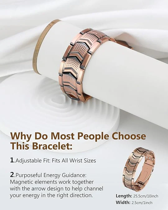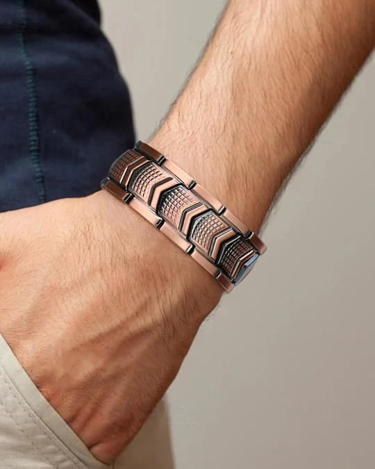 A stylish magnetic copper bracelet crafted for daily wear, designed to combine classic masculine style with the supportive comfort of magnetic elements. It’s built for those who want a piece that looks good, feels good, and adds a touch of wellness-focused balance to their routine.