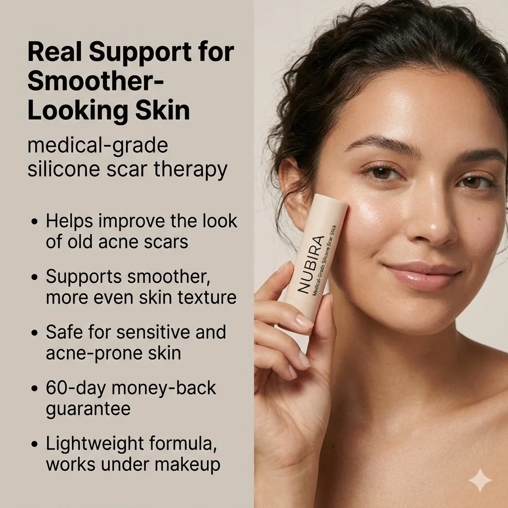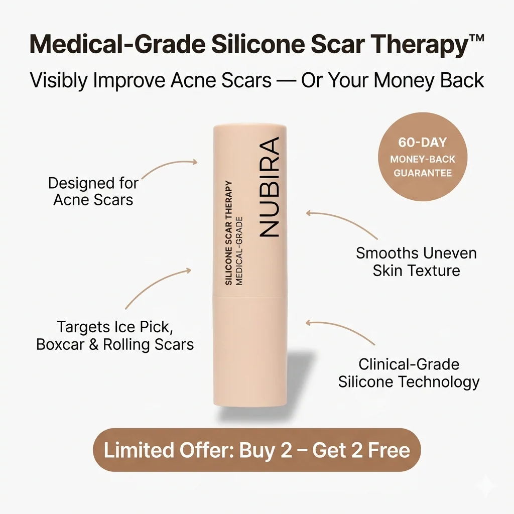 Acne may heal, but the texture it leaves behind doesn’t have to be permanent. NUBIRA™ ScarSeal Stick is a professional-grade solution designed to visibly flatten, soften, and fade indented acne scars (Ice pick, Boxcar, and Rolling scars). Using Clinical Silicone Occlusion Therapy, it creates a breathable, 24-hour protective barrier that locks in moisture and supports balanced collagen remodeling. Unlike aggressive retinoids or painful laser treatments, NUBIRA works with your skin’s natural repair process—no downtime, no irritation, just smoother skin every single day.