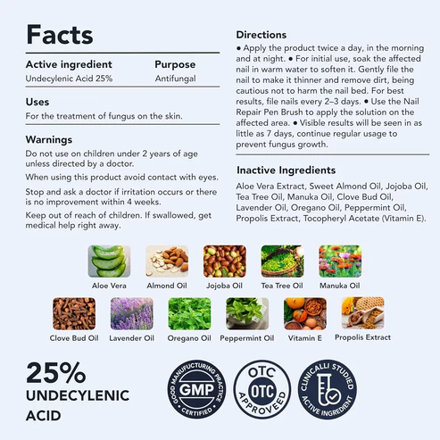 The antifungal action works deeply — irritation disappeared, the nail bed looks cleaner, and the damaged part is slowly being replaced by clear new growth. Love how simple it is to apply.