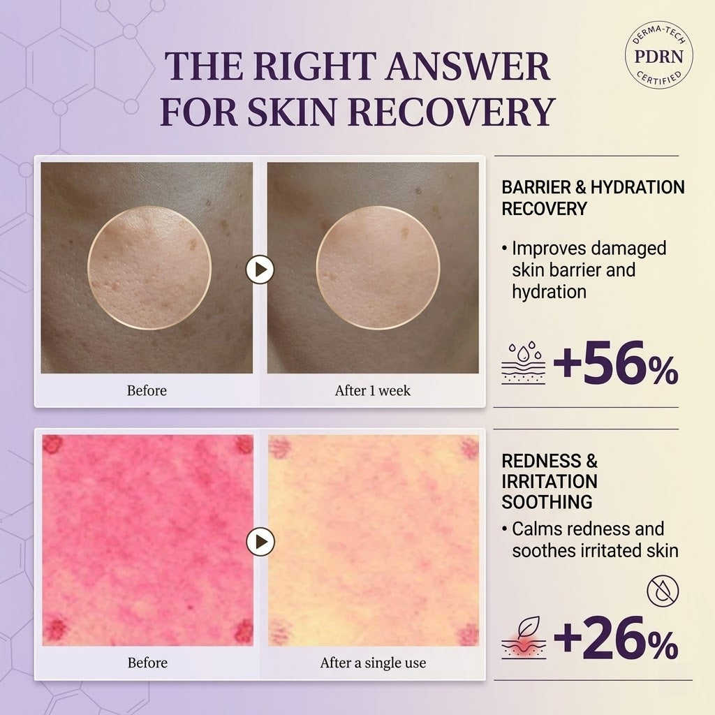 PDRN is known for supporting the skin’s natural renewal process and helping improve the look of elasticity and texture. It is commonly used in advanced Korean skincare formulations focused on long-term skin maintenance.