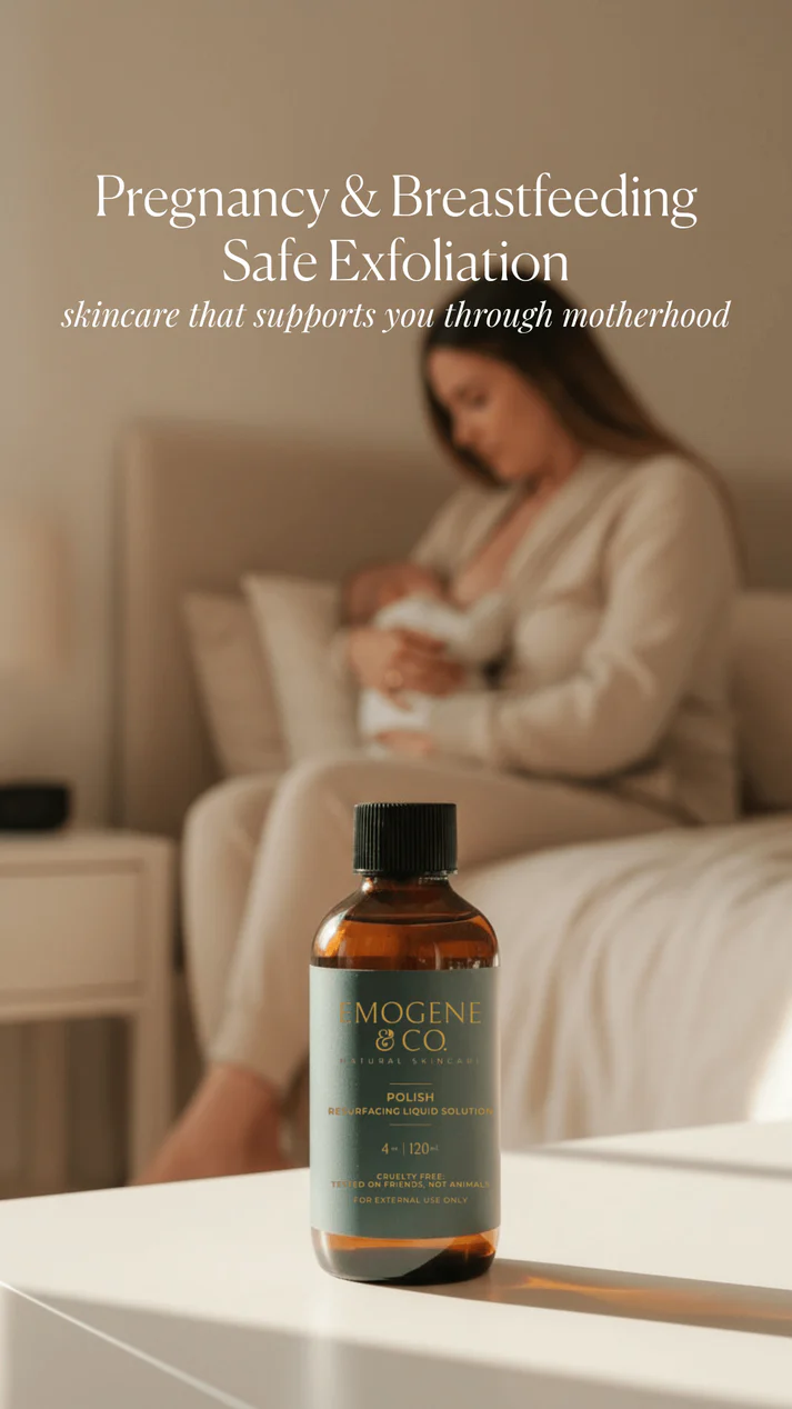 Gentle AHA + PHA Blend. Sensitive Skin Safe. Pregnancy & Breastfeeding Aligned. No-Sting Brightening.
