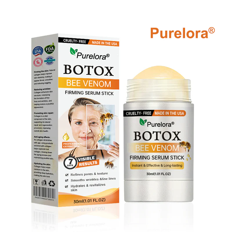 Meet Purelora® Bee Venom Firming Serum Stick — a mess-free, glide-on serum stick designed to support a smoother, firmer-looking appearance on the face and body.