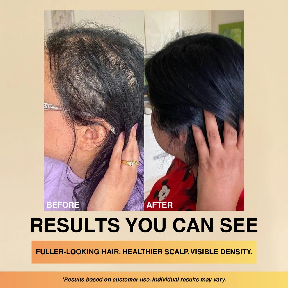 Many users notice improved scalp comfort and reduced oil within the first few uses. Visible improvements in fullness and thickness typically appear with consistent use over several weeks.
