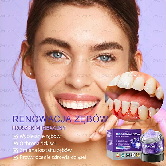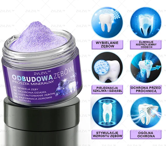 ZVLZVL™ Teeth Restoration Mineral Powder eliminates 99.99% of bacteria, eliminates bad breath, removes plaque and tartar, treats gingivitis and periodontitis, relieves toothache, prevents and treats cavities, rebuilds tooth enamel, stimulates the formation of repair dentin and supports the regeneration of lost teeth.